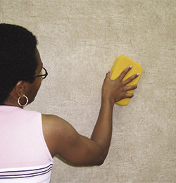 CLEAN. Wash and rinse walls to remove grease and dirt. The surface must be clean and free of mildew, grease and stains.